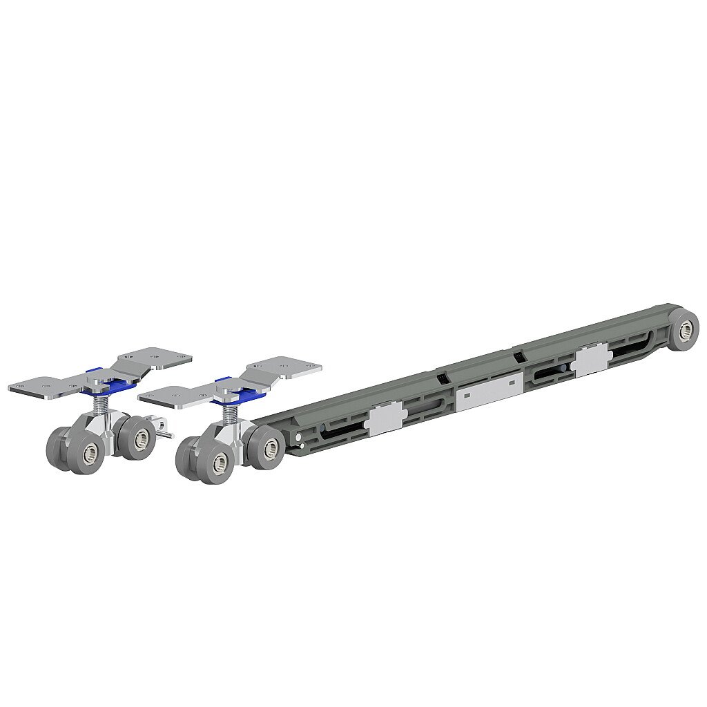 Комплектация: каретка с роликами обрезиненными на шарикоподшипниках - 1 шт.; каретка с роликами обрезиненными на шарикоподшипниках в сборе с демпфером - 1 шт.; крепежная пластина с болтом и гайкой - 2 шт.; активатор депфера - 2 шт.; комплект саморезов - 1 шт.; нижний поводок - 1 шт.; рожковый ключ - 1 шт.; инструкция по сборке - 1 зкз.