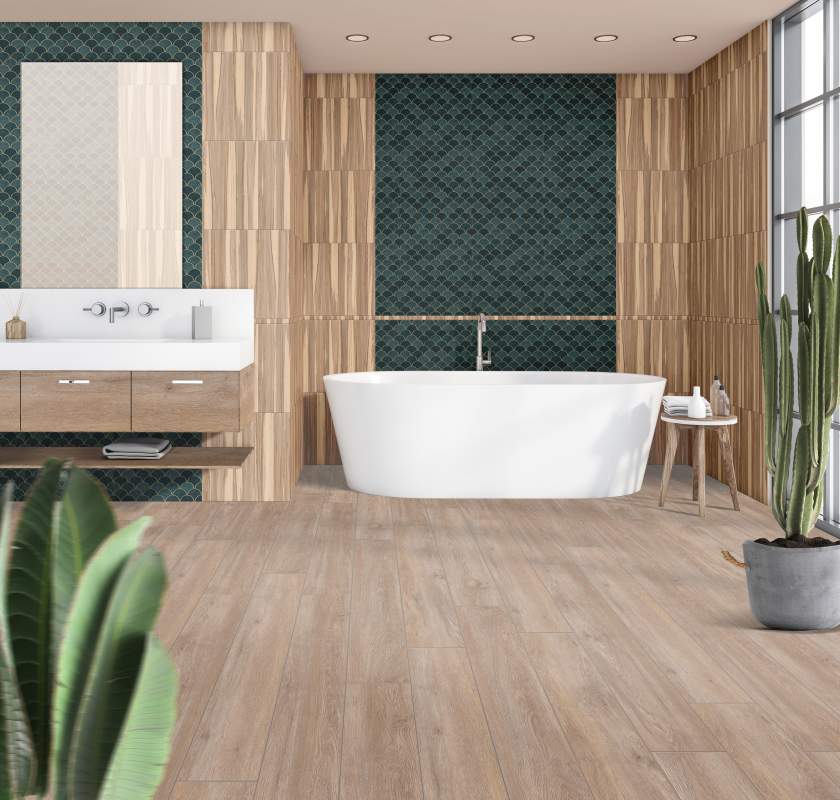 Одно из главных преимуществ кварцвинила — его 100% влагостойкость, что делает его идеальным для использования в ванных комнатах и других помещениях с повышенной влажностью. Двойная замковая система обеспечивает надежное соединение досок, предотвращая проникновение влаги. Толщина защитного слоя — 0,5 мм. Он защищает покрытие от механического воздействия и ударной нагрузки, позволяет продлить срок службы.