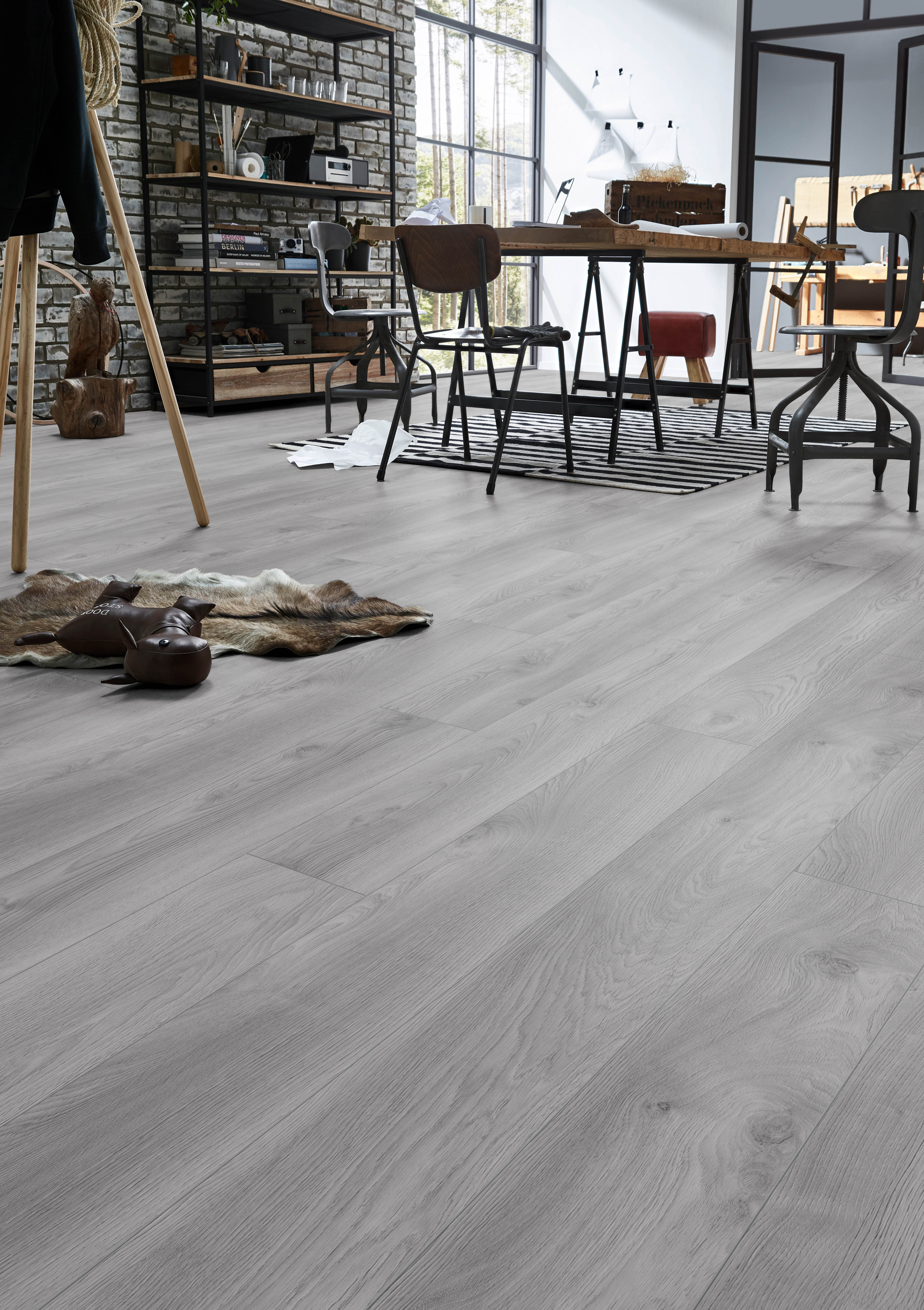 Немецкое производство и наличие сертификатов гарантируют стабильное качество. Текстура дуба не выходит из моды и легко сочетается со скандинавским и минималистичным стилями. Такой пол гармонично смотрится в кухне-гостиной, коридоре и детской, где важны практичность и спокойный фон.