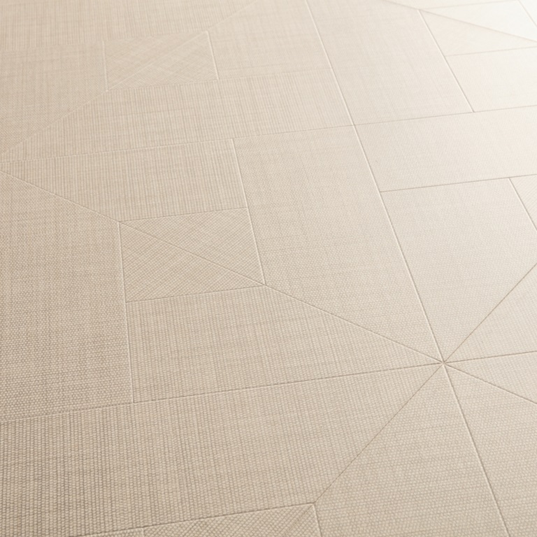 Ламинат Quick Step (Квик степ) Текстиль натуральный — прочное и эстетичное напольное покрытие для дома и коммерческих помещений с высокой проходимостью. Производство — Россия, коллекция Impressive Patterns Ultra. Бежевый оттенок и рисунок под плитку с текстурой текстиля создают спокойный фон и четкий геометрический рисунок, который легко вписывается в современный интерьер.