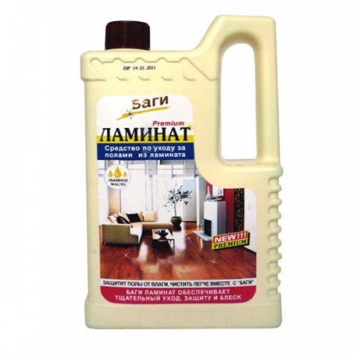 Жидкий полироль для ламината – самый дешевый вариант. Его недостатки – короткий срок действия и скользкая поверхность в первые дни после обработки. -