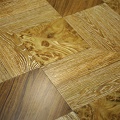Диагональная укладка позволяет зрительно увеличить площадь комнаты. Монтаж ламелей начинают с угла помещения или с центра в шахматном порядке строго под углом 45°. Работа требует особой аккуратности, поэтому мастера используют в качестве ориентира натянутый шнур и сначала соединяют торцевые замки ламелей.