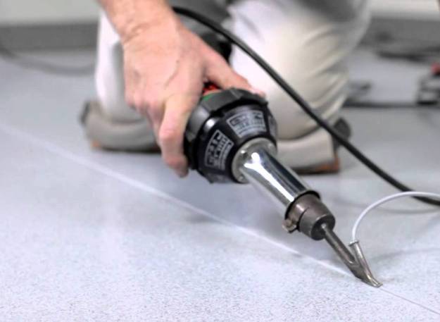 После приклеивания полотен стыки можно соединить с помощью специального оборудования, а именно – методом горячей сварки при температуре 400°C. Для этого используется сварочный пистолет, в который вставляется шнур. На стыке формируют паз. При работе пистолета из него выходит шнур, который укладывается в паз и расплавляется, соединяя края полотен. После остывания шов шлифуется. Шнуры выпускаются в разных цветах.